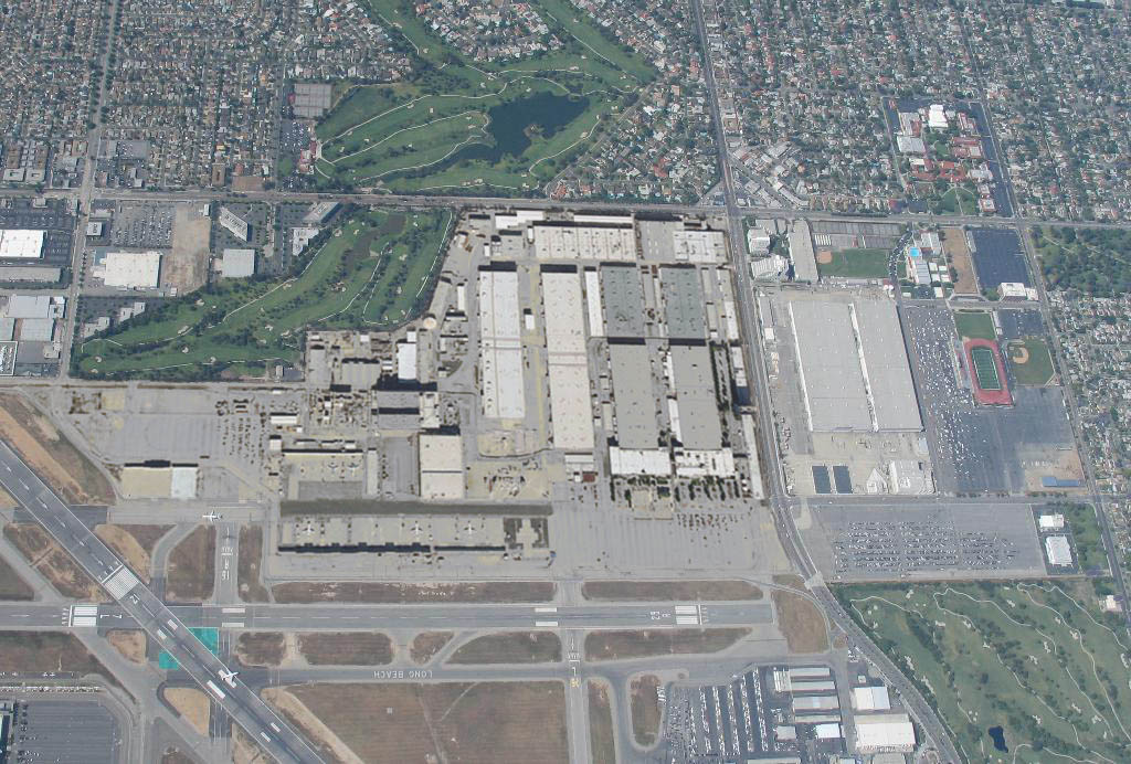 Retouched Aerial Photo of DAC - Taken at 8500 feet. Photo composition of former buildings Circa 2003 Long Beach Airport is in the forground.
