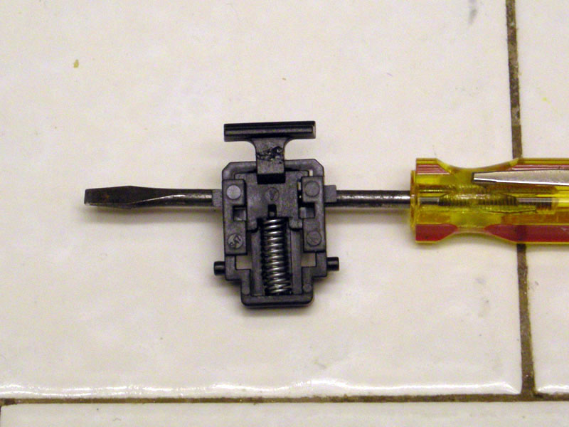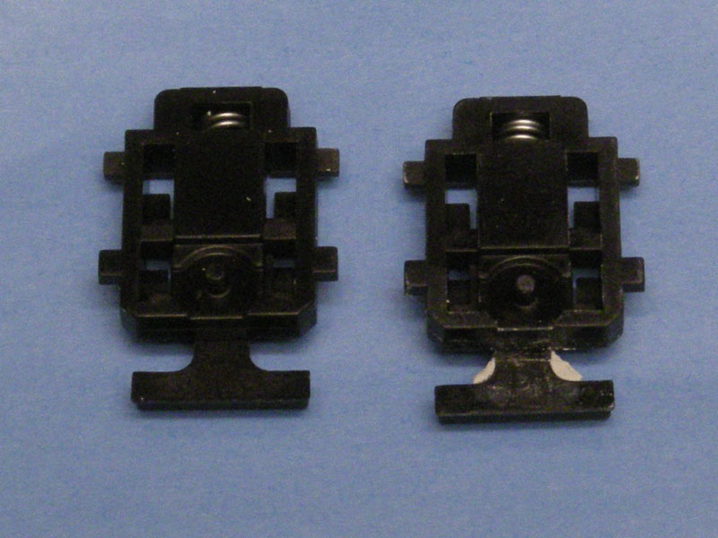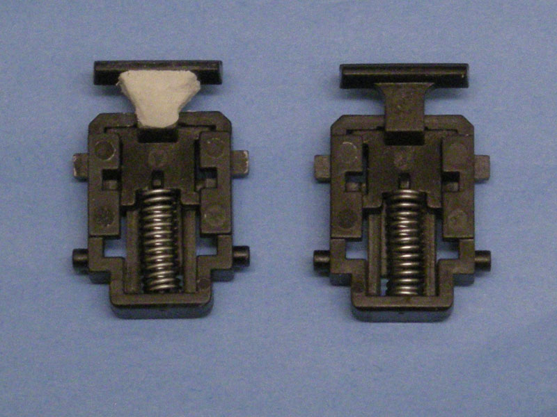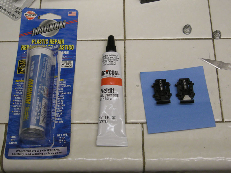 I used, Magnum Plastic Repair, Devcon Weldit Glue and an Exacto Blade to clean up the repair. Also shown here are the conical shaped springs that hold these mechanisms in place. |